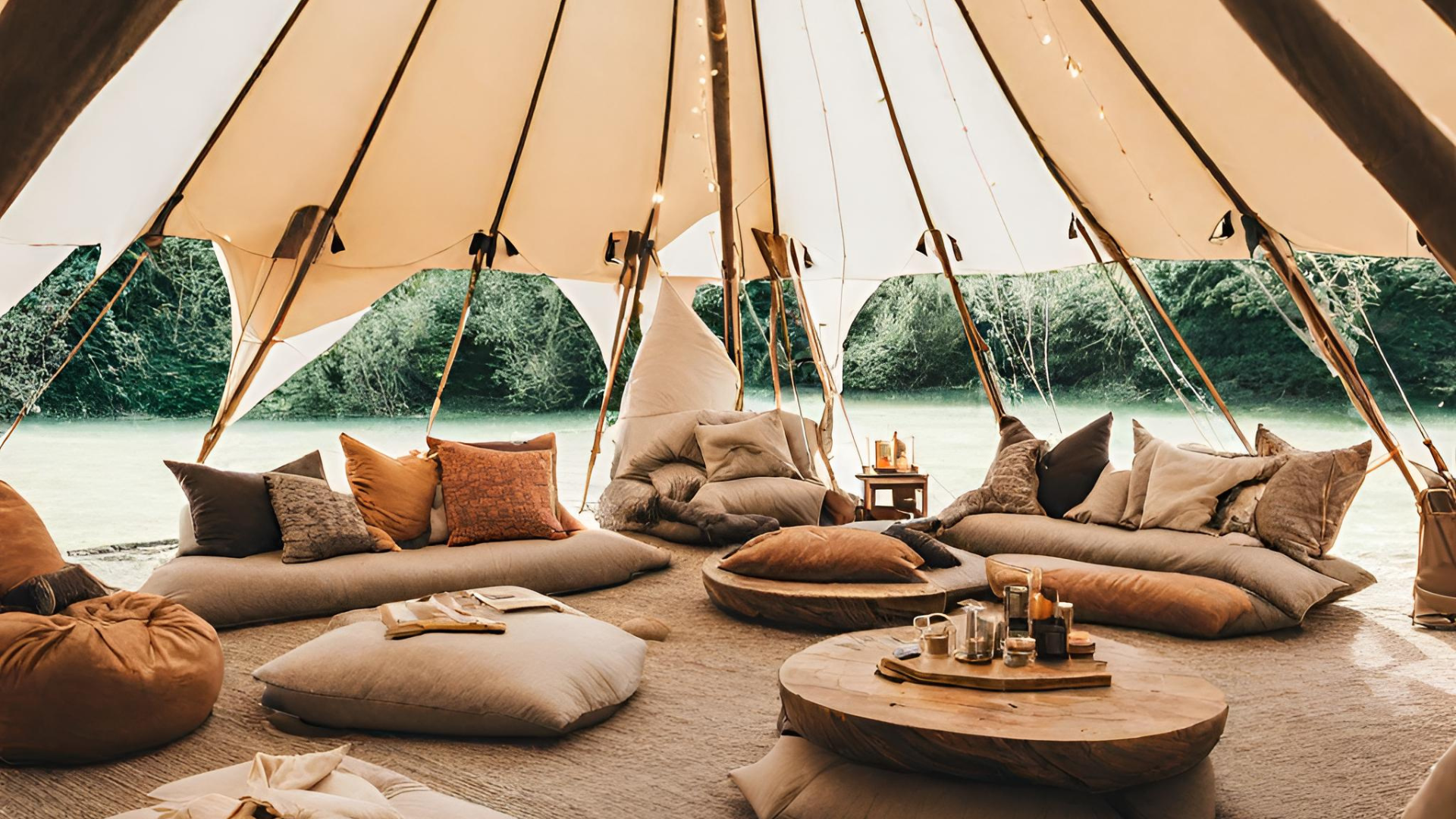 A large Tipi forms the central Clubhouse creating the space for deep work, socialising and relaxing. Picture wood-fired grills, library, impromptu gatherings, and friendships born from a shared love of adventure
